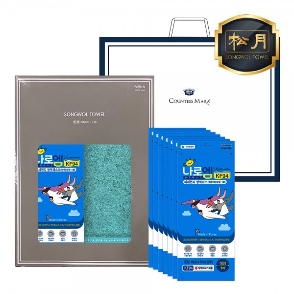 송월 타월 마스크 2종 콤보세트 (솔리드 뱀부 + KF94마스크(나로엠미세먼지방역마스크(흰색)(대형))