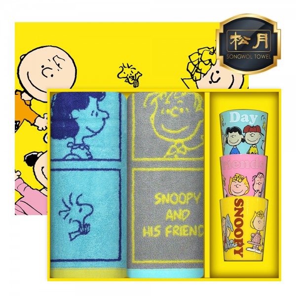 [스누피전용 타월 컵 세트] 스누피 카툰40 2장 스누피 3P 컵 세트
