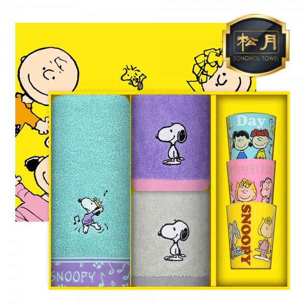 [스누피전용 타월 컵 세트] 스누피 뮤직40 1장 스플릿36 2장 스누피 3P 컵 세트