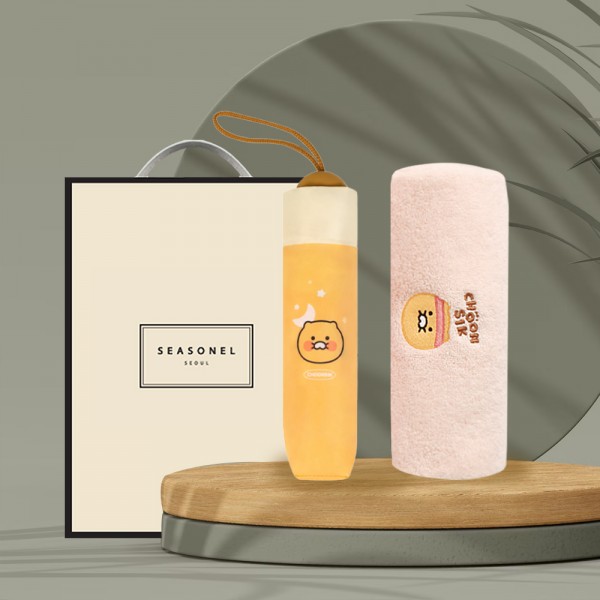 시즈넬 선물세트 카카오 코마사40수타올+카카오 수동우산