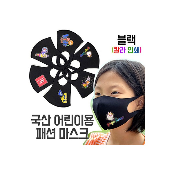 국산 어린이 아동용 패션 마스크 블랙 부분인쇄