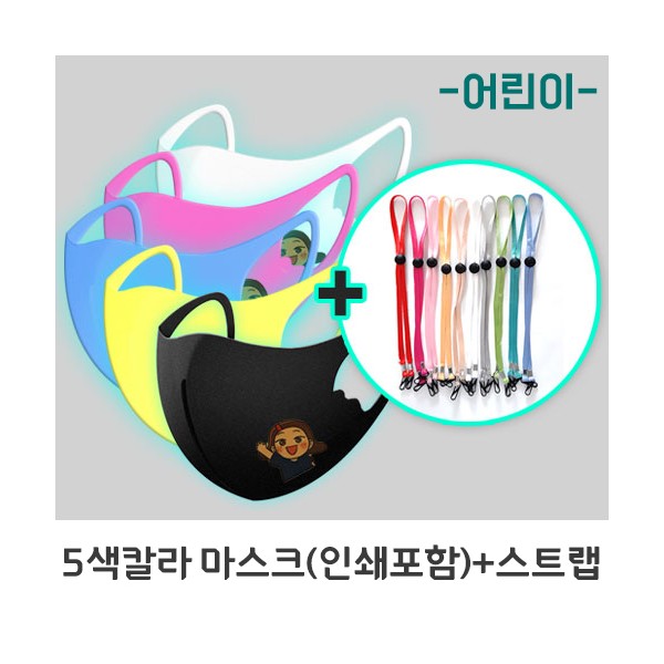 5색칼라 아동용 패션마스크 (칼라인쇄포함)+스트랩