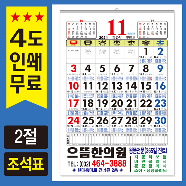 | 기타사항 | ※ 조석표(물때) 달력은 항구별로 모아서 인쇄하므로 한달이상 소요될수 있습니다. ※ 2절 사이즈에 한해 택배 무게초과로 배송이 변경됩니다 ** 70g - 50개 묶음(1박스) / 100g - 40개 묶음(1박스) |