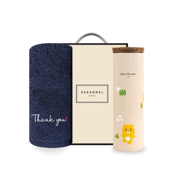 시즈넬 선물세트 송월타올 땡큐190g+카카오 슬림 텀블러