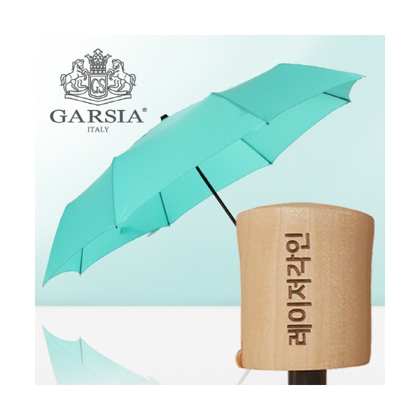 가르시아 3단 민트 마시멜로 원목손 수동우산