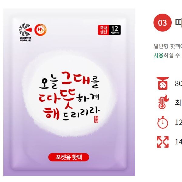 | 인쇄 | 불가 | 재질 | 핫팩 |