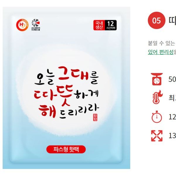 | 인쇄 | 불가 | 재질 | 핫팩 |