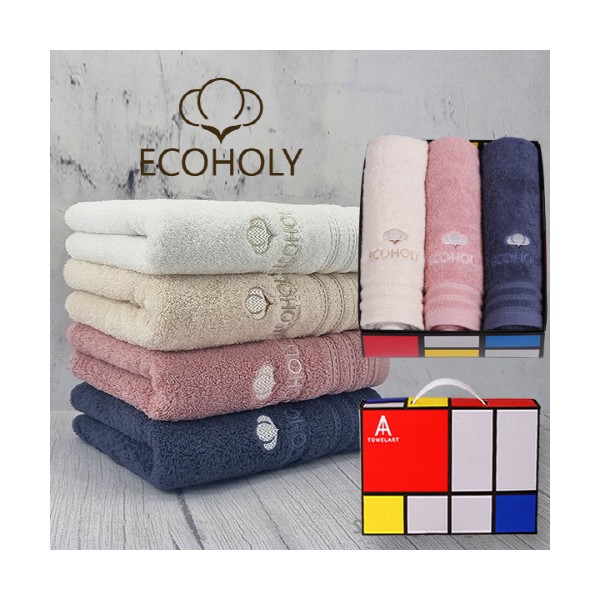 에코홀리 스티치 40수 190g 친환경 세면타월 3P-타월세트