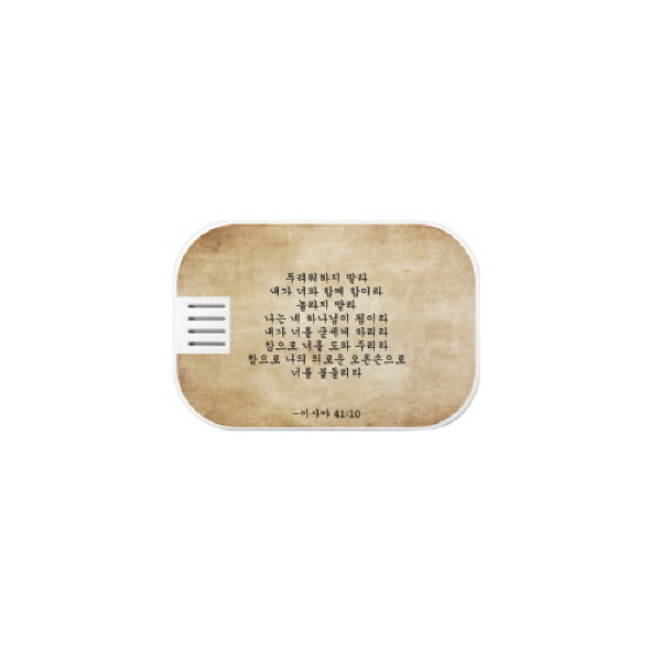 | 규격 | 51*75*24mm | 색상 | No.1아모스5:24,No.2빌립보서4:6,No.3코린퇴13:7,No.4마태복음11:24,No.5아가서2장10절,No.6아사야41:20 |
