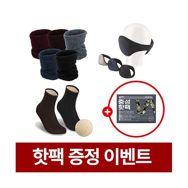 | 규격 | 벨보아 넥워머(24cm X 30cm) / 왕 귀마개(43cm X 12.5cm) / 방한 덧신 (FREE[240~275mm]) | 색상 | 벨보아 넥워머(블랙, 네이비, 그레이, 브라운, 버건디) / 왕 귀마개(블랙, 네이비, 그레이) / 방한 덧신(블랙, 브라운) |