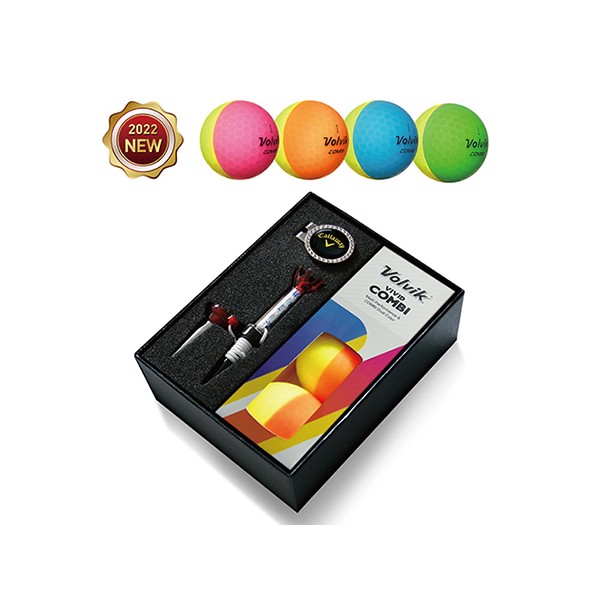 [EGVVC-208S] 볼빅 VIVID 콤비 골프볼3구+볼마커(실버)+클립+티세트