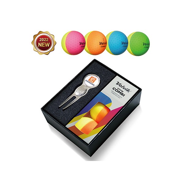 [EGVVC-210S] 볼빅 VIVID 콤비 골프볼3구+그린보수기 볼마커(실버)세트