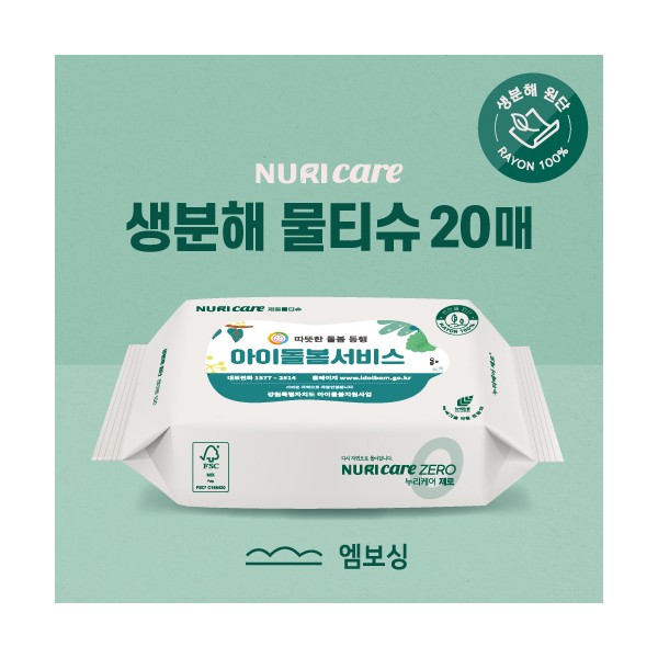 FSC인증 생분해 물티슈 그레이 20매 (엠보싱)