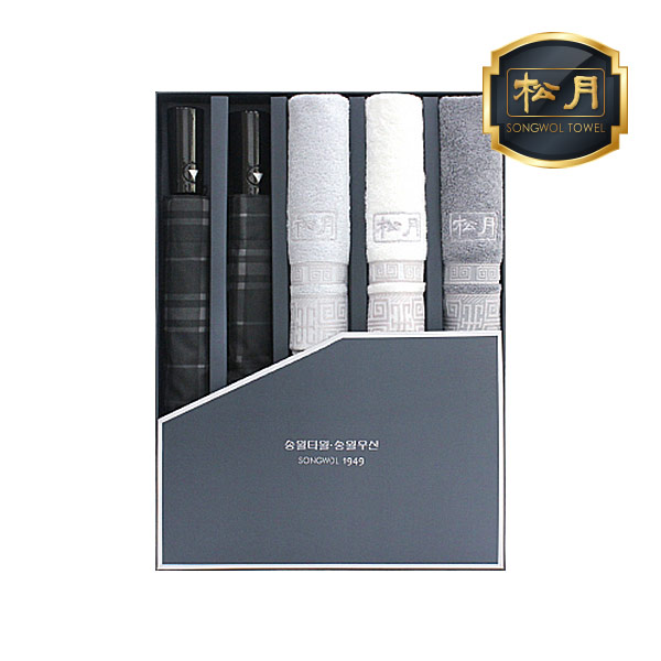 송월 우산 수건 콤보세트 SWU 2단 모던체크 2개 송월 격자40 3장 5매입 세트