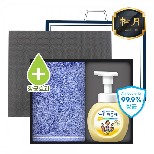 송월 완벽 항균 케어 2P 세트 (핸드워시 1개 + 솔리드혼방사 타올 1매)